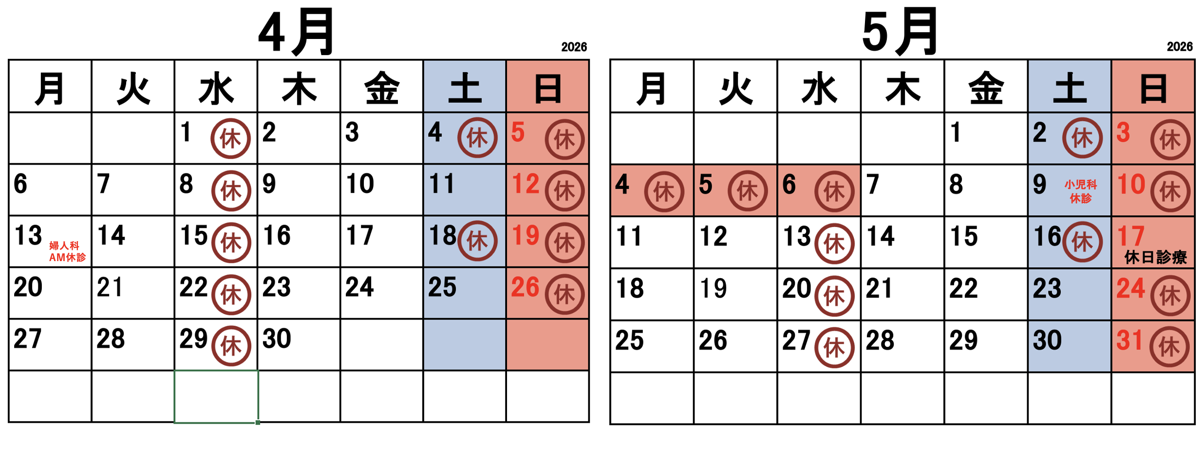 | 休診日 | 水曜日・日曜・祝日・第1第3土曜日 |
